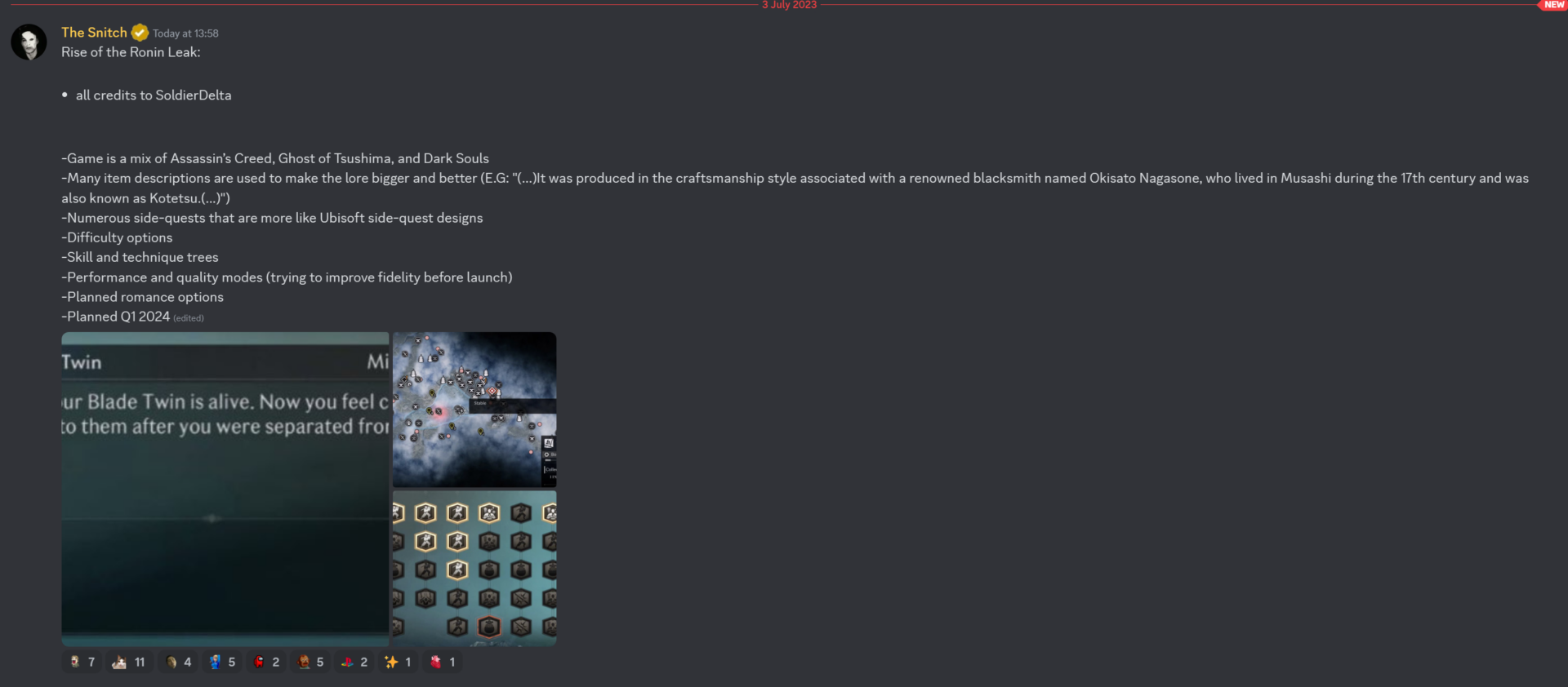 Povremeni insider The Snitch otkrio je putem discorda nekoliko novih detalja o spomenutom akcijskom RPG-u koje je mu je navodno otkrio izvjesni SoldierDelta. Kolege iz Insider Gamera su kontaktirale spomenutog insidera koji je otkrio kako je vidio screenshotove iz igre te da vjeruje da su 100% točne sve informacije do kojih je došao.