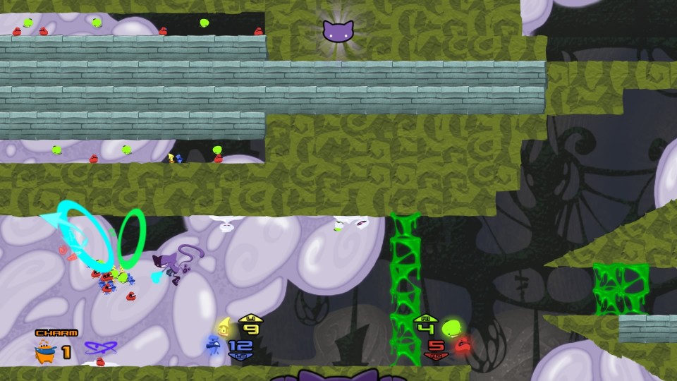 Mačka koja je ovdje u glavnoj ulozi ima veliku pomoć kvarkova u raznim bojama. Upravo njihovo skupljanje i razne sposobnost daju naočigled nešto što ovu igru čini posebnom. Četiri različite vrste kvarkova sa različitim sposobnostima od stvaranje pregrada, omogućavanja većeg skakanja, bušenja određenih područja se mogu iskoristiti ako se skupi određeni broj kvarkova istih boja, a moguće je i kombiniranje kvarkova različitih boja kako bi se stvorili novi power-upovi. Sve te kombinacije svakako razgibavaju moždane vijuge igrača što popraćeno dosta jasnim i dobrim kontrolarama čini početno iskustvo igranje igre zadovoljavajućim i primamljivim. Uz navedene kvarkove, glavna posebnost igre je izbjegavanje istih levela i predvidljivosti same igre. Da pojasnim detaljnije, igra stvara svakim novim igranjem 7 glavnih svjetova drugačije prepreke i izazove koji su određeni nasumično. Sve to je svakako zanimljivo i pristupačno no glavna boljka igre je u ipak previše statičnim levelima i nedovoljno iskorištenim okolišem na istima, a i činjenici da nas igra upoznaje sa previše toga prebrzo i prejasno.