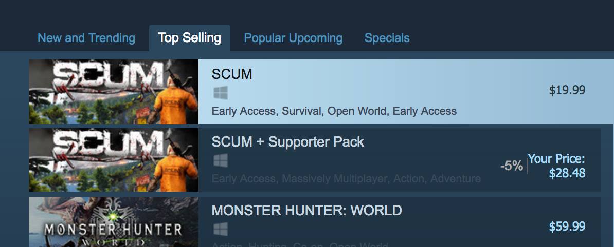 SCUM, the supermax survival game from @Gamepires, is now available on Steam Early Access! Welcome to SCUM Island: https://t.co/FkNnXluLIe pic.twitter.com/c2TKvvXhw5
