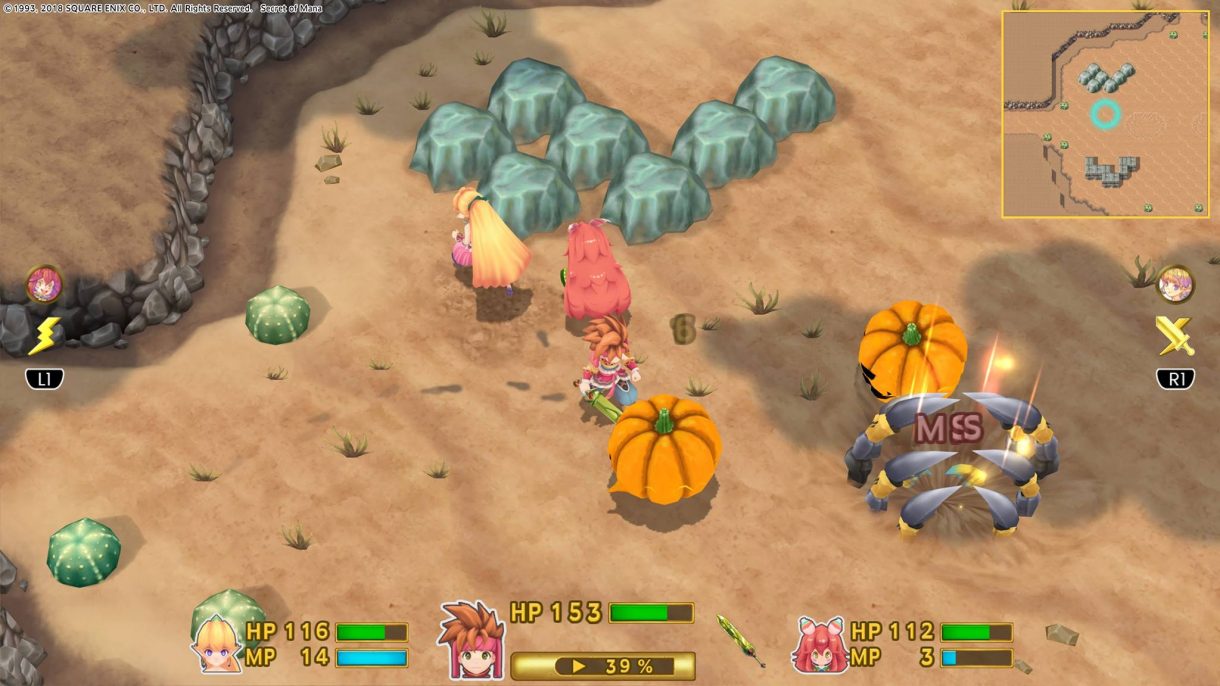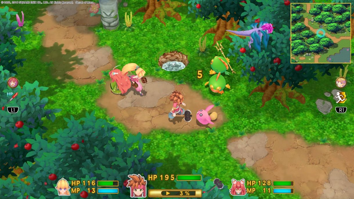 To je posebno vidljivo i na polju gameplaya. Naime, originalna igra imala je klasično top-down izvođenje, dok je kamera u remakeu dodatno spuštena i često postavljena iz izometrične perspektive. Sama jezgra igre ostala je gotovo nepromijenjena u odnosu na SNES original, što znači da nas još jednom očekuje lutanje brojnim lokacijama, uz borbu u stvarnom vremenu koja je doživjela nekoliko intenzivnijih izmjena. Prije svega, zbog trodimenzionalnosti u koju je ovo izdanje igre kročilo, sada je moguće zadavati udarce u svim pravcima, uz potpuno slobodno kretanje tijekom borbe. Svoje protivnike možete napadati konstantno, no budući da postoji skala jačine udarca koja se prazni nakon svakog udarca, da bi vaši napadački potezi bili što učinkovitiji potrebno je pravilno pozicioniranje prema protivniku i naravno puna napadačka skala, a takvo što se svodi na udaranje protivnika i konstantno bježanje po mapi (magični napadi učinkoviti su protiv svih protivnika koji se nađu u našem dosegu, pa je s magijom nešto drukčija priča, no budući da je mana koju koristimo jako rijetka ili skupa za nabaviti, magiju ćemo vrlo rijetko prakticirati). Iako djeluje vrlo jednostavan, borbeni sustav u igri prilično je kompleksan. Svi likovi u igri mogu nositi isto oružje, ali se razlikuju po određenim sposobnostima i vještinama, a tijekom igre moguće je mijenjati kontrolu nad svakim od njih, no najveći problem koji se tiče samih AI kontroliranih likova jeste upravo ta umjetna inteligencija koja je na momente blago rečeno užasna. Vrlo često ćete čupati kosu gledajući vaše suborce kako rade razne gluposti tijekom borbe. Rezultat ovoga leži u nedostatku Grid sistema u kojem smo ranije mogli defininirati ponašanje suboraca, no za utjehu, igra nudi i mogućnost lokalnog kooperativnog igranja u društvu još dva prijatelja (online co-op nažalost nije dostupan), koji značajno popravlja situaciju.