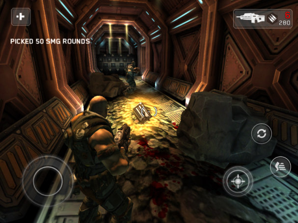 Kontrole su veoma jednostavno odrađene, slično kao i u ostalim pucačinama za touch ekrane. Lijevo imate virtualni analog stick za kretanje, dok su na desnoj strani kontrole za reload, pucanje i izmicanje. Vidno polje mjenjate (odnosno ciljate) pomicanjem prsta po desnoj strani. Ukratko, kontrole su pojednostavljene što je više moguće. Sustav zaklona je za svaku pohvalu s obzirom da je to najvažniji aspekt igre. Ulazite i izlazite iz zaklona jednostavnim pokretom lijevog analog sticka, bez ikakvih dodatnih tipki. Veliki dio igre ćete se zadržavati u zaklonu, osobito pri većim težinama budući da protiv nabrušenih neprijatelja „Rambo badass“ stil ne pali (možda na easy, ali tko još igra na tome). Tu su i action tipke koje se prikazuju kada lik treba izvršiti neku određenu akciju (kao npr. deaktivirati lasersku barijeru, popeti se uz ljestve…). Igra traje oko 6 sati. Cijela kampanja je u potpunosti linearno odrađena. Razumljivo je da se teško riješiti linearnosti kad je u pitanju mobile igra, ali ipak ste ovdje osuđeni na prijelaz od točke A do točke B bez mogućnosti ikakvih varijacija.