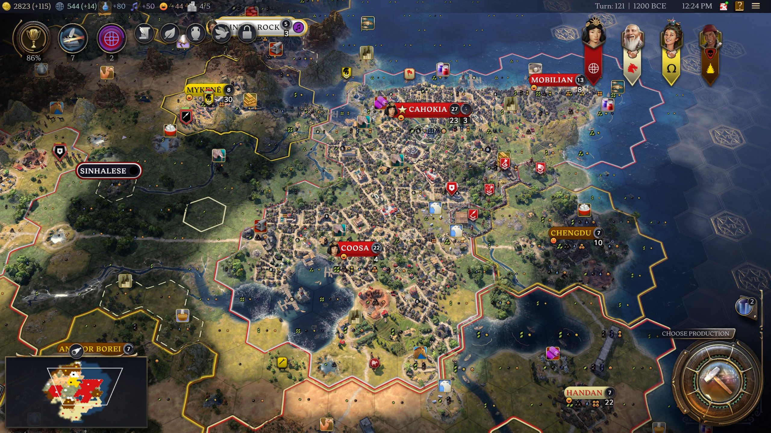 Još veći problem je mehanika promjene civilizacije kroz razdoblja. Nema baš smisla da, primjerice, ruska kraljica započne igru kao Grčka ili Rim, a tek dosta kasnije dobije mogućnost da odabere Rusiju kao svoju naciju. Svako razdoblje nudi određene civilizacije koje možete birati, ali pritom ih morate otključati dok igrate. Umjesto strateške fleksibilnosti, često postoji samo jedan “pravi” izbor koji se najbolje uklapa u snage vašeg vođe, što umanjuje samu raznolikost igre.