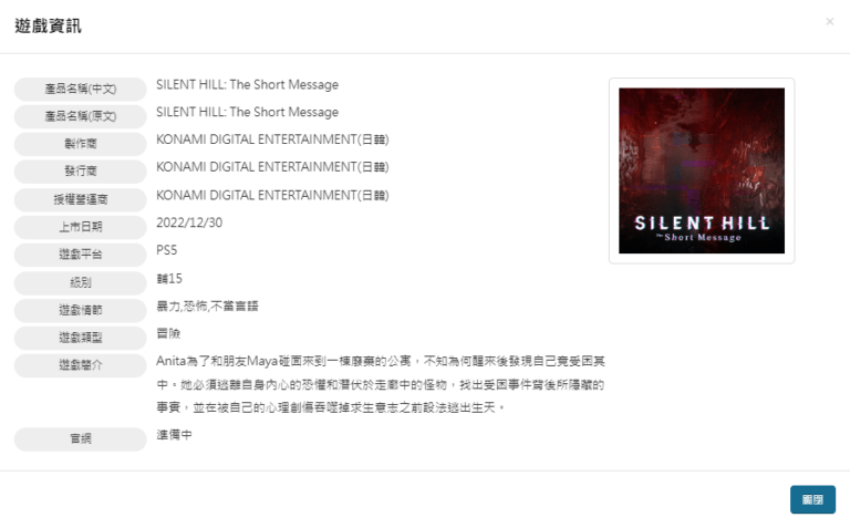 Nakon što je tijekom rujna dobio rating u Južnoj Koreji, Silent Hill: The Short Message je ovih dana primjećen i na stranici Taiwan Digital Game Rating Comitteeja. Točnije, rating je dobila njegova PS5 verzija, čime smo u neku ruku dobili i neslužbenu potvrdu prve platforme kojoj je ova igra namijenjena.