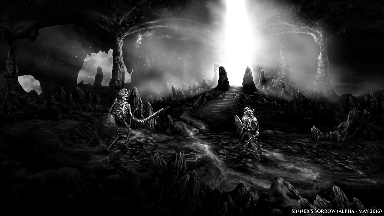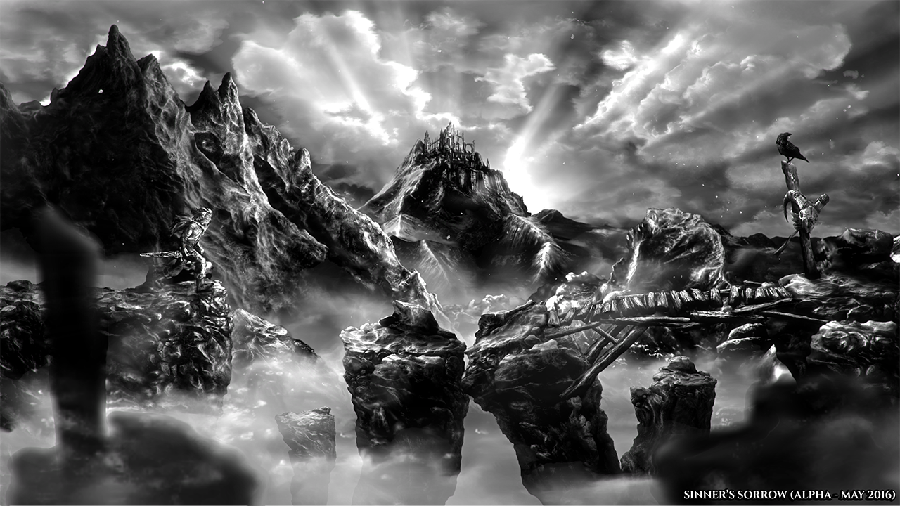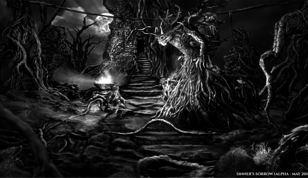 Ono što međutim prvo upada u oko je distinktivan vizualni stil inspiriran crno-bjelom vizurom logičkog platformera Limbo. Sinner’s Sorrow doduše tu ima i dodatni specifikum jer je igra samo dominantno crno-bijela, to znači da bi tamna fantastika, na momente bliska i Darksidersu, mogla imati i neke koloritne ispade. Dodatna zanimljivost tiče se i narativnog dizajna. Naime, kako naslov nalaže, igrač preuzima ulogu griješnika koji se našao u nekoj vrsti sjenovitog ambisa preko kojeg pokušava doći do svog izbavljenja.