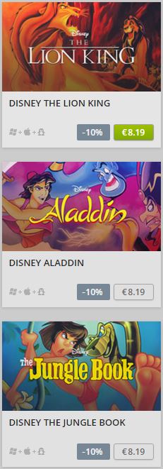 Raznorazni klasici mnogim gamerima i gamericama su i dalje u srcima. Neki su, naravno, postali dio legendi, iz doba NESa, SNESa i SEGE MEGA DRIVE kojih se ponekad sjetimo samo kad smo posebno raspoloženi i u posebnom društvu. Jedni od tih klasika su i Disneyevi platformeri koji, iako nisu bili sami vrh igrivosti i savršenstva ni u godinama kada su izdani, jednostavnost, šarenilo i platformerski gameplay uvijek je ostao mnogima u srcu. I bez obzira na sve, i dvadeset godina kasnije, nekima ne izlaze iz mode i sjećanja. No, kopanju po emulatorima, ROMovima i podrumima tražeći stare konzole, došao je kraj, barem što se popularne GOG stranice tiče. Od ovoga tjedna u njihovoj velikoj ponudi ”dobrih i starih igara” naći će se upravo tri takva klasična Disneyeva platformera: Disney Aladdin, Disney The Lion King i Disney The Jungle Book.