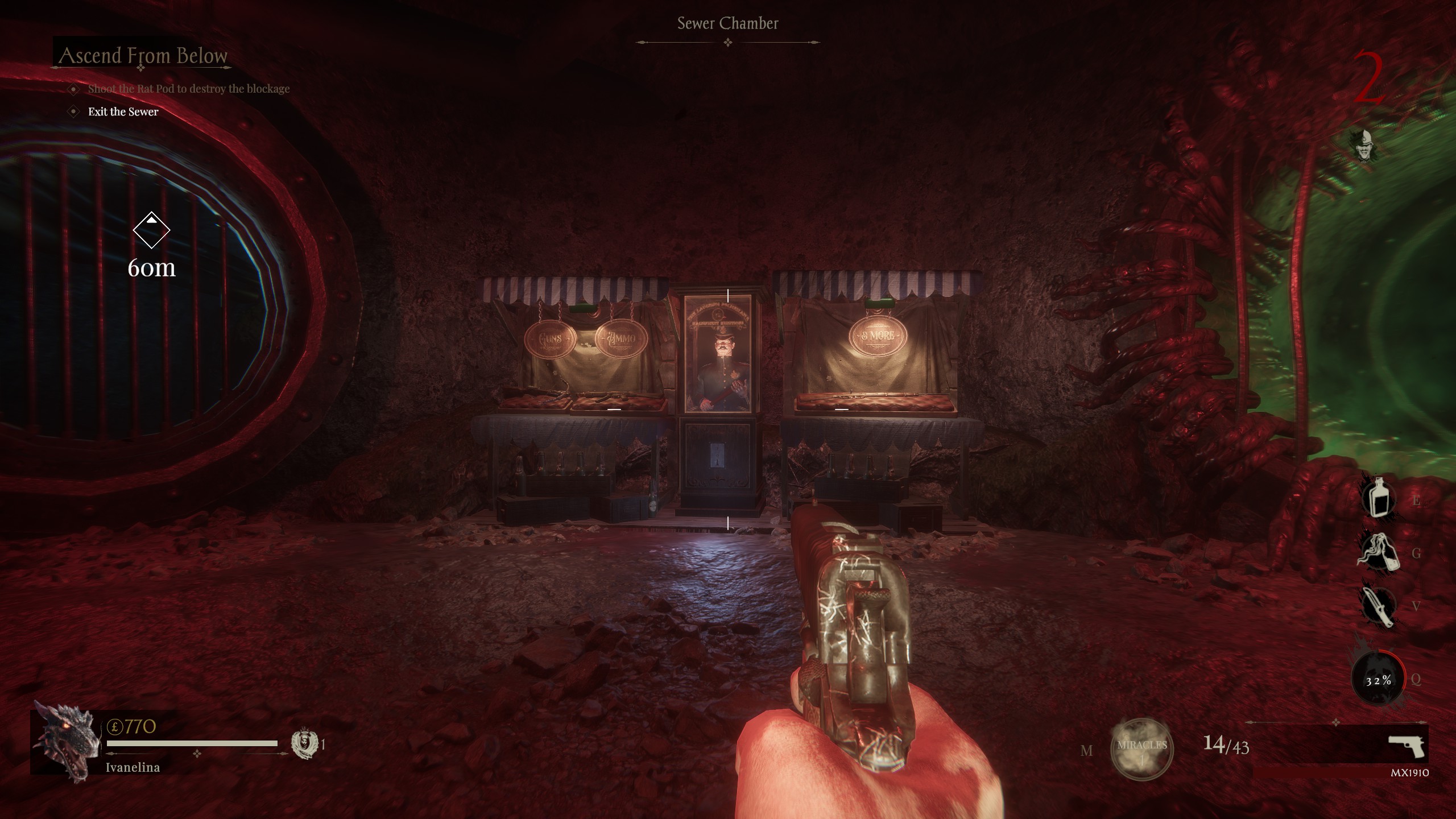 Pored pušaka i oružja za borbu na blizinu kao što je sjekira, imate pristup trima alatima, eliksiru za liječenje, molotovljevoj koktel bombi i moćnom specijalnom pokretu, koji svi imaju cooldown. Ti se alati mogu prilagođavati i nadograđivati u redovitim intervalima putem Miraclesa, koji nudi izbor između tri nasumično odabrana modifikatora. Ovisno o ponuđenim mogućnostima, možete pretvoriti svoj molotov u otrovnu bombu, dobiti pasivna pojačanja od vašeg eliksira, te dobiti vatreni AOE napad ili golema obrambena poboljšanja sa svojim specijalnim pokretom. Oružje u Sker Ritualu doista se ističe i imate mogućnost nadograditi ga kroz razne levele. Sačmarice, obični pištolji, samostrijel i razne puške osjećaju se snažno i učinkovito. Unatoč tome, iskustvo igranja Sker Rituala vrlo malo se može razlikovati između različitih sesija, čak i kada se radi o istim ciljevima priče.