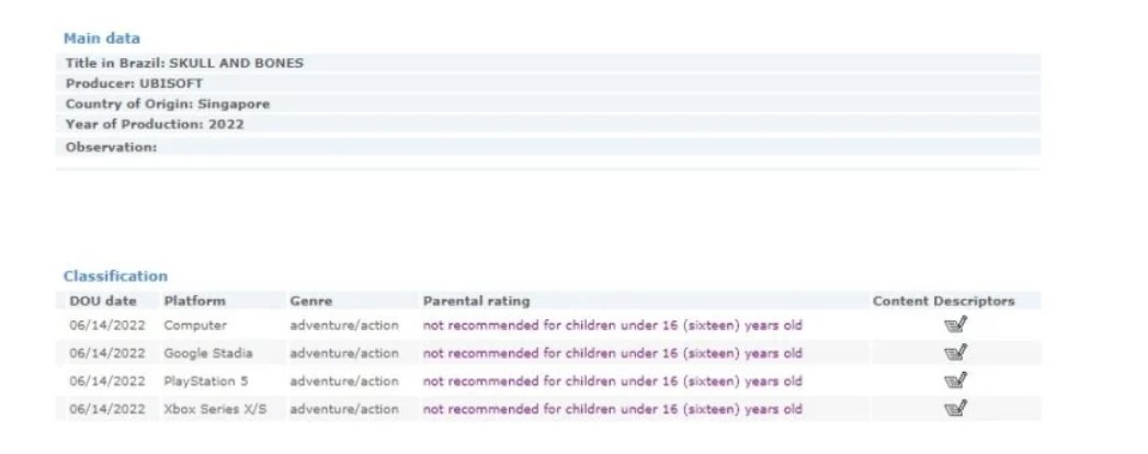 Sudeći prema novom ratingu iz Brazila, koji je primjetila uvijek budna ekipa sa Reddita, Ubisoftova pomorska akcija Skull & Bones bi se, nakon petogodišnje plovidbe prilično nemirnim oceanima, konačno mogao usidriti na PC-u i current-gen konzolama.