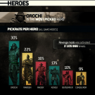 Kada je u pitanju najčešće birani heroj u alphi, tu je situacija prilično jasna – na vrhu poretka nalazi se Orochi (30%), a nakon njega slijede Warden (22%) i Raider (16%). Iza njih na ljestvici nalaze se Kensei (13%), Berserker (10%) i Conqueror (9%).