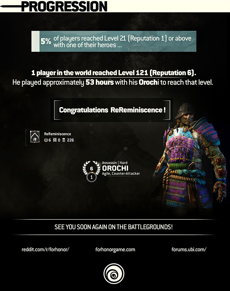 Iako smo vas već prilično detaljno izvjestili o statističkim podacima prošlomjesečne For Honor zatvorene alphe, Ubisoft je tek sada objavio službenu infografiku koja otkriva hrpetinu dodatnih detalja alphe, uključujući i informacije o najčešće biranim herojima, najubojitijim herojima, prosječnom vremenu provedenom u igri i slično, a iako sve podatke možete vidjeti u galeriji ispod, obratićemo pažnju na neke od najzanimljivijih statističkih podataka.