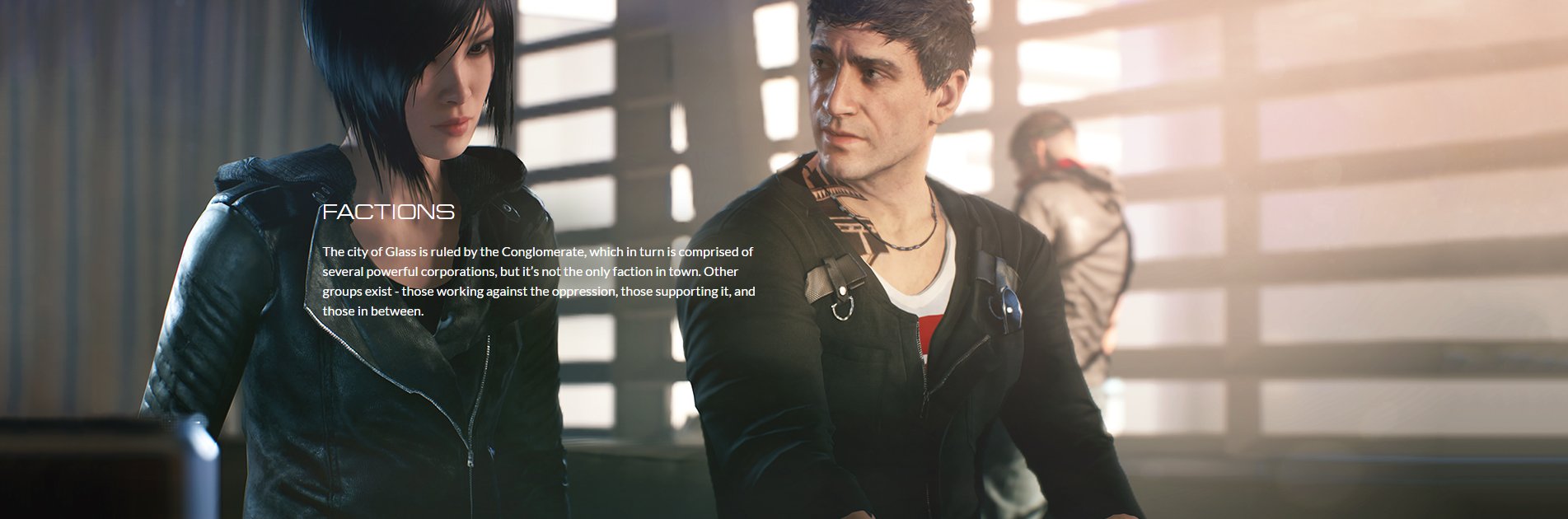 Službena stranica nove Mirror’s Edge igre, MirrorsEdge.com, osvježena je sa novim detaljima glavnog grada u kojem je smještena igra, a tu su i nove slike iz igre koje će nam skratiti čekanje do 24.svibnja. Opisi na stranici odnose se ne sve četvrti u gradu kao i na razne frakcije koje vladaju tim četvrtima, a tu su informacije o Faithinoj prošlosti kao i o šefu korporacije Krugersec, Gabrielu Krugeru. Od informacija koje možete pročitati na službenoj stranici, izdvajamo one o stanovništvu Glassa, koji je na broju od pet milijuna. Glassom vlada Conglomerate, udruženje koje je satkano od svih ostalih frakcija koje vladaju raznim četvrtima. Downtown, The View i Anchor glaven su četvrti koje se razlikuju po ekonomskoj moći stanovništva te arhitekturi. Dosta toga možete vidjeti i sami na novim slikama: