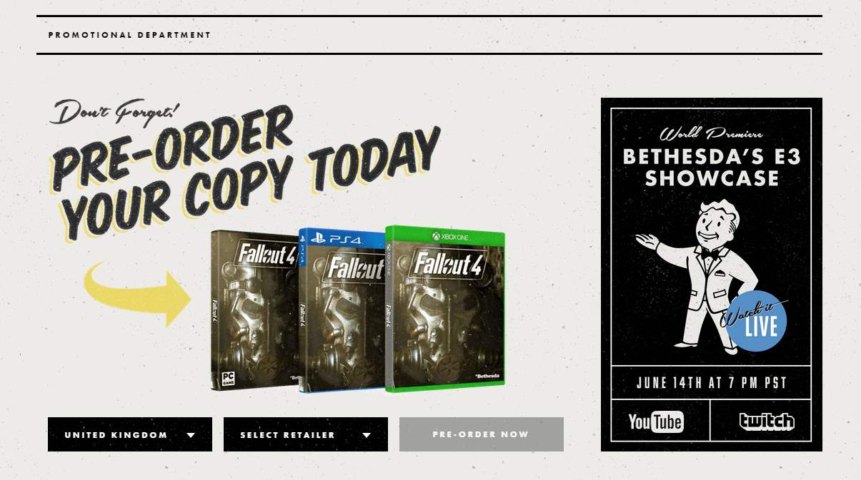 Naravno da stiže, neki bi rekli i što su čekali do sada, pobogu. Kako god bilo, Fallout 4 stiže na Xbox One, Playstation 4 i PC (Windows) platforme u još nepoznatom terminu. Sajt koji je poslužio kao placeholder za objavu i napaljivanje postapokaliptičnih masa (http://fallout4.com) je sasvim slučajno (moš’ mislit) objavio i potvrdio Fallout 4. Sajt je trenutno nedostupan pa se objava ne može više pronaći. No, kao i uvijek, internet sve pamti. Na spomenutom sajtu je čak bio i link za pre-order (istina bog nije vodio nikuda).
