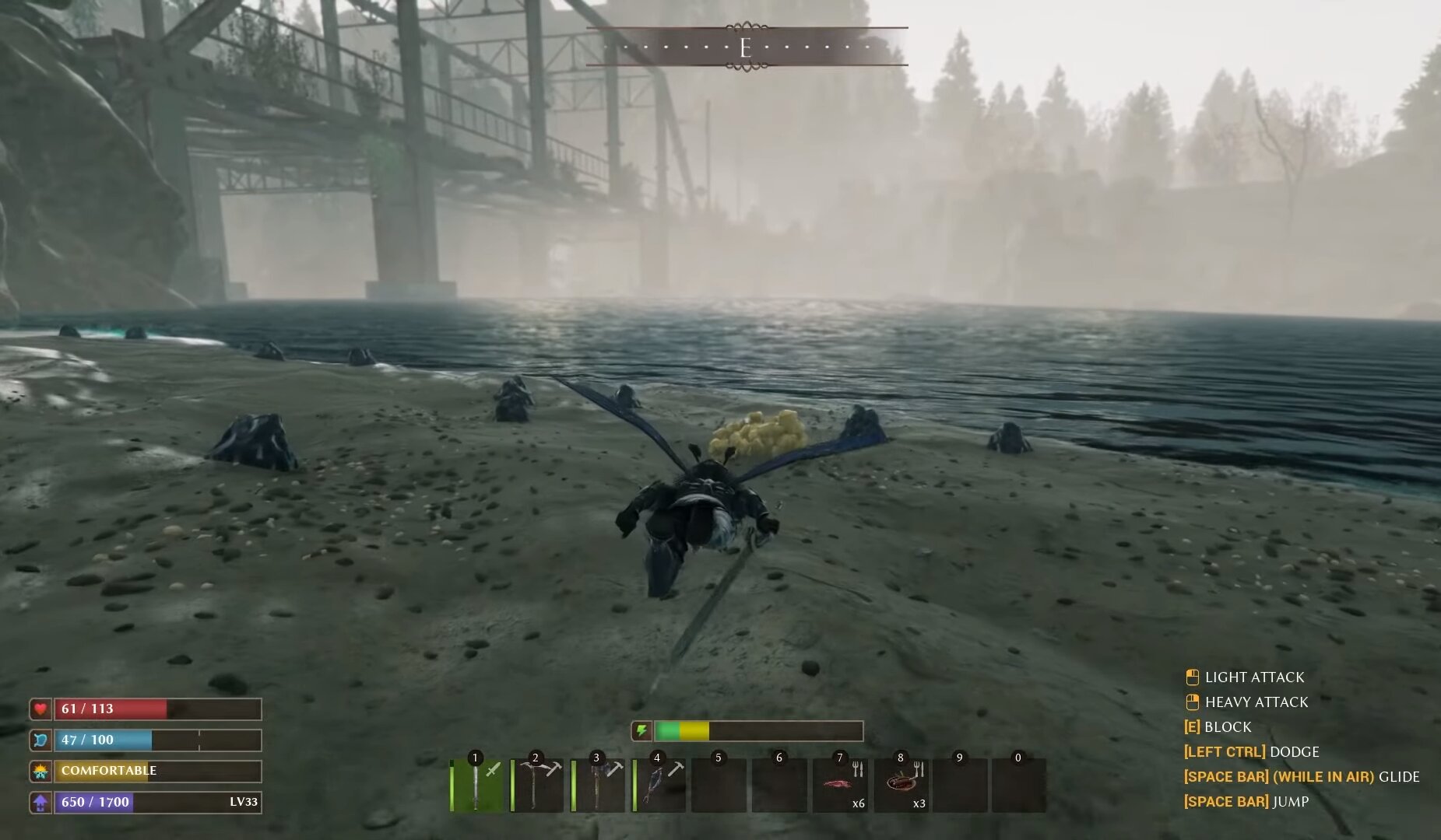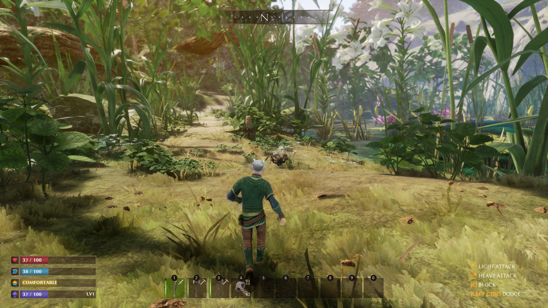 Na sreću, većinu osnovnih resursa možete pronaći u blizini početnog područja igre. No, kako napredujete, potrebni su vam sve rjeđi resursi koje možete dobiti samo iz opasnih područja s neprijateljski nastrojenim stvorenjima. Nakon što prođete određen dio igre, tek tada ćete shvatiti koliko je grindy; nekima će ovo pasati dok drugi baš i neće uživati u konstantom hodanju naprijed i nazad. Frustrirajuće je također što resurse ne možete pokupiti kad im se približite, već tek kada ih ručno pokupite s tla. Dinamika igranja kreće se oko toga da upoznajete razne NPC-jeve, oni vam daju razne zadataka, uz to otključavaju određene aspekte igre, primjerice, ako porazite bossa otključat ćete određene recepte, oružja i oklop, a sve to kako biste došli do sljedeće zone.