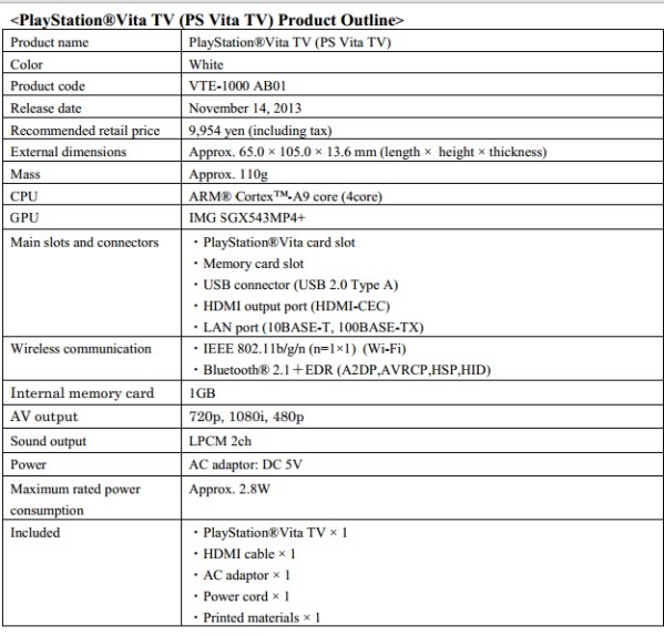 Tijekom jutrošnje konferencije za novinare Sony je najavio novi dodatak nazvan PlayStation Vita TV. Kao što je moguće pretpostaviti, ovdje se radi o uređaju koji će igračima omogućiti igranje PS Vita igara na TV-u. Uređaj će se u prodaji pojaviti 14. studenog 2013. godine po cijeni od 9954 yena (cca 556 kn).