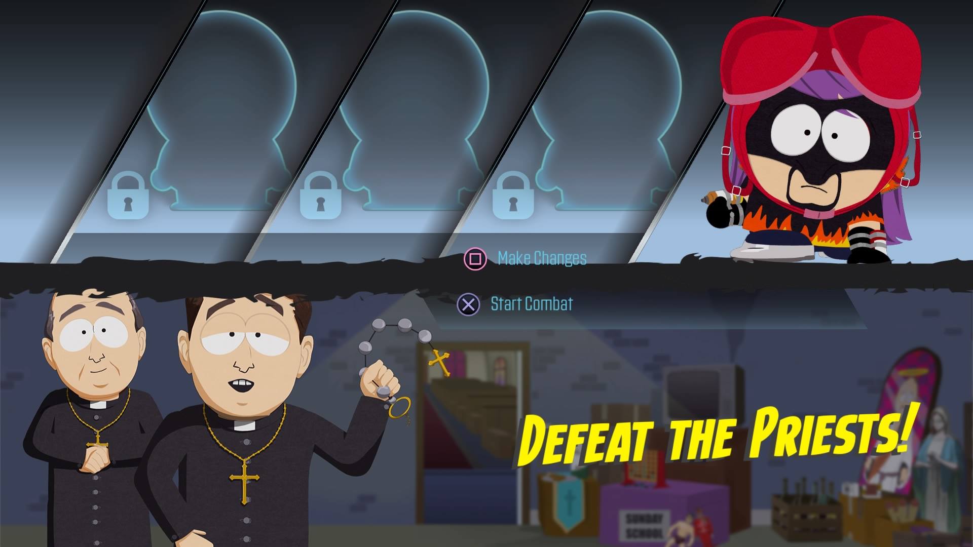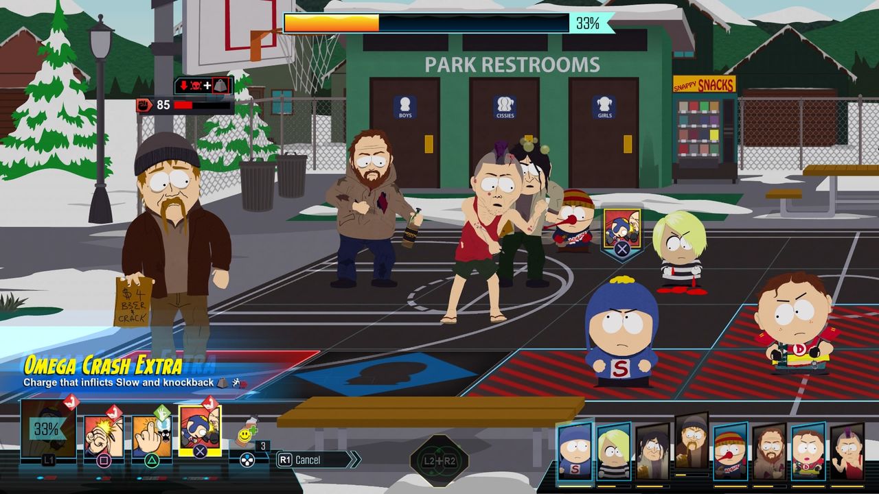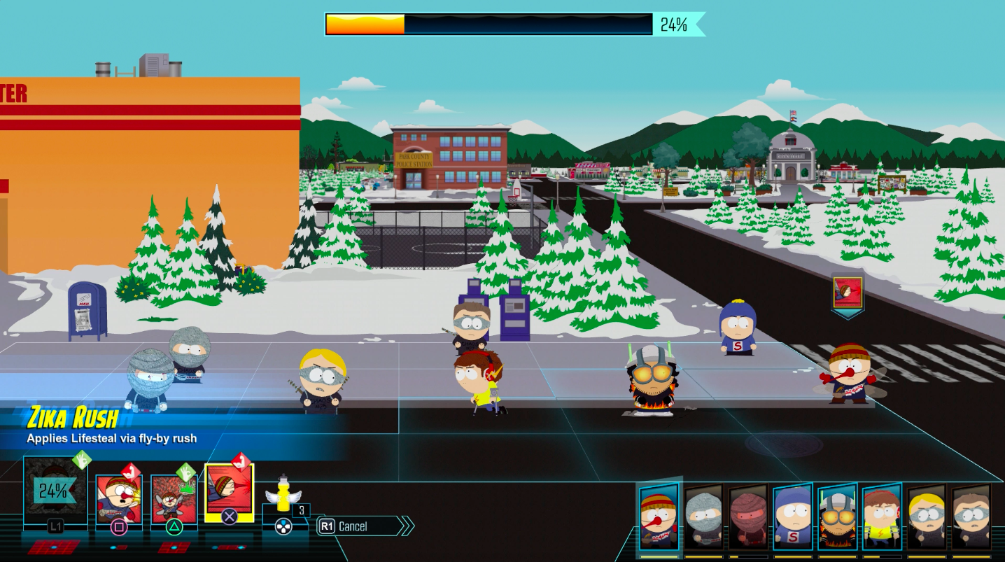 Naime, budući da je The Fractured But Whole klasični RPG, pred nama je na početku odabir jedne od tri ponuđene klase (Brutalist, Speedster i Blaster), a tijekom igre otključat ćemo i preostalih sedam klasa (ukupno ih je u igri 10 iako ih je inicijalno trebalo biti 12). Igra nam na odabir nudi sve moguće kombinacije klasa i skillova pa tako možemo kreirati i svojevrsne hibridno-klasne likove koji uz potpunu modifikaciju glavnog lika (na raspolaganju su nam čak i tri spola – Male, Female i Trigender) nudi zaista nebrojene mogućnosti. Tri su razine težine, a ono što će definitivno nasmijati svakoga sa smislom za crni humor, jeste podatak da težina u igri (količina novca koji dobivamo, odnos s drugim likovima isl.. zapravo sve osim borbe) ovisi od boje kože našeg kreiranog heroja, s tim da je igra najlakša ukoliko kreirate bijelog lika, a najteža ako se odlučite za crnog. O ovom kontroverznom potezu Stone – Parker dua zasigurno će se pričati još, no isto tako pričat će se i o promjenama koje su stigle u borbeni sustav.