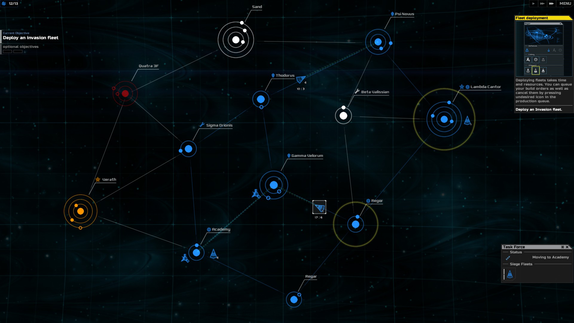 Isto tako možete graditi i neku od tri vrste flota, no za to vam je potreban planet koji ima “brodogradilište”. Dodatno možete ubrzati gradnju tako da zauzmete neki od planeta s resursima ili više njih. Imajte na umu da će svaka borbena stanici i kinetički štit usporiti brzinu gradnje brodova radi potrošnje energije.