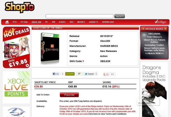 Naime, na stranicama Shopto-a pojavile su se informacije o igri Lego Lord of the Rings, koje su ubrzo potom i uklonjene, no ostale su dovoljno dugo da vam možemo priložiti screenshot kao dokaz.