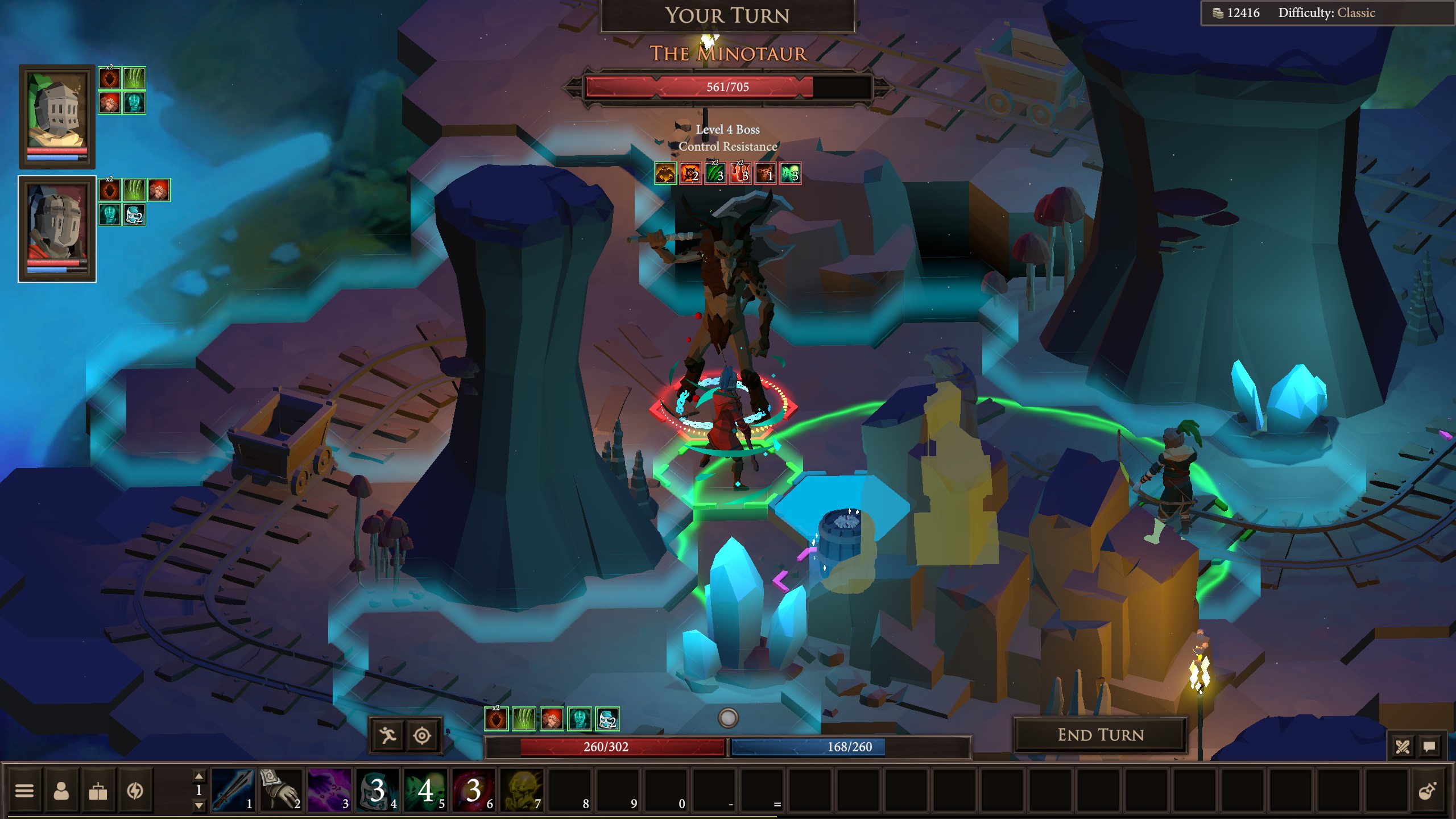 Članovi družine imaju zdravlje, manu, bodove akcije (AP) i bodove kretanja (MP), s vještinama koje često imaju vrijeme hlađenja i troše manu. Borba također uključuje okolišne elemente poput totema koji pružaju buffove ili debuffove. Naravno, susrest ćete se s raznim događajima koji mogu utjecati na vaše likove, bilo pozitivno ili negativno, kao i s borbama protiv bosseva. Nažalost, neprijatelji se često ponavljaju po regijama, pa nije bilo velike raznolikosti u tome aspektu. Tehnički, igra radi glatko zahvaljujući svom nisko-poligonskom dizajnu. Međutim, ne možete poništiti izbore, što može biti frustrirajuće ako slučajno napravite grešku. Isto tako ne možete koristiti potrošne predmete izvan borbe, a mini igre kao što su pecanje i rudarenje postaju zamorne nakon nekog vremena, pa bi bilo možda najbolje da se mogu automatski odraditi umjesto klikanja ili okretanja miša.