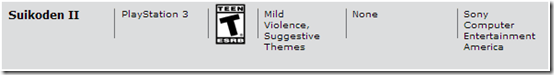 Kao što je moguće vidjeti, ESRB je dao rating za igru, te je samo pitanje vremena kada će se ona pojaviti na PlayStation Networku. Suikoden II originalno je izašao zavisno o regiji 1999./2000. godine za PlayStation. Svojim grafičkim izgledom, gameplay stilom i pričom osvojio je srca mnogih igrača diljem svijeta.