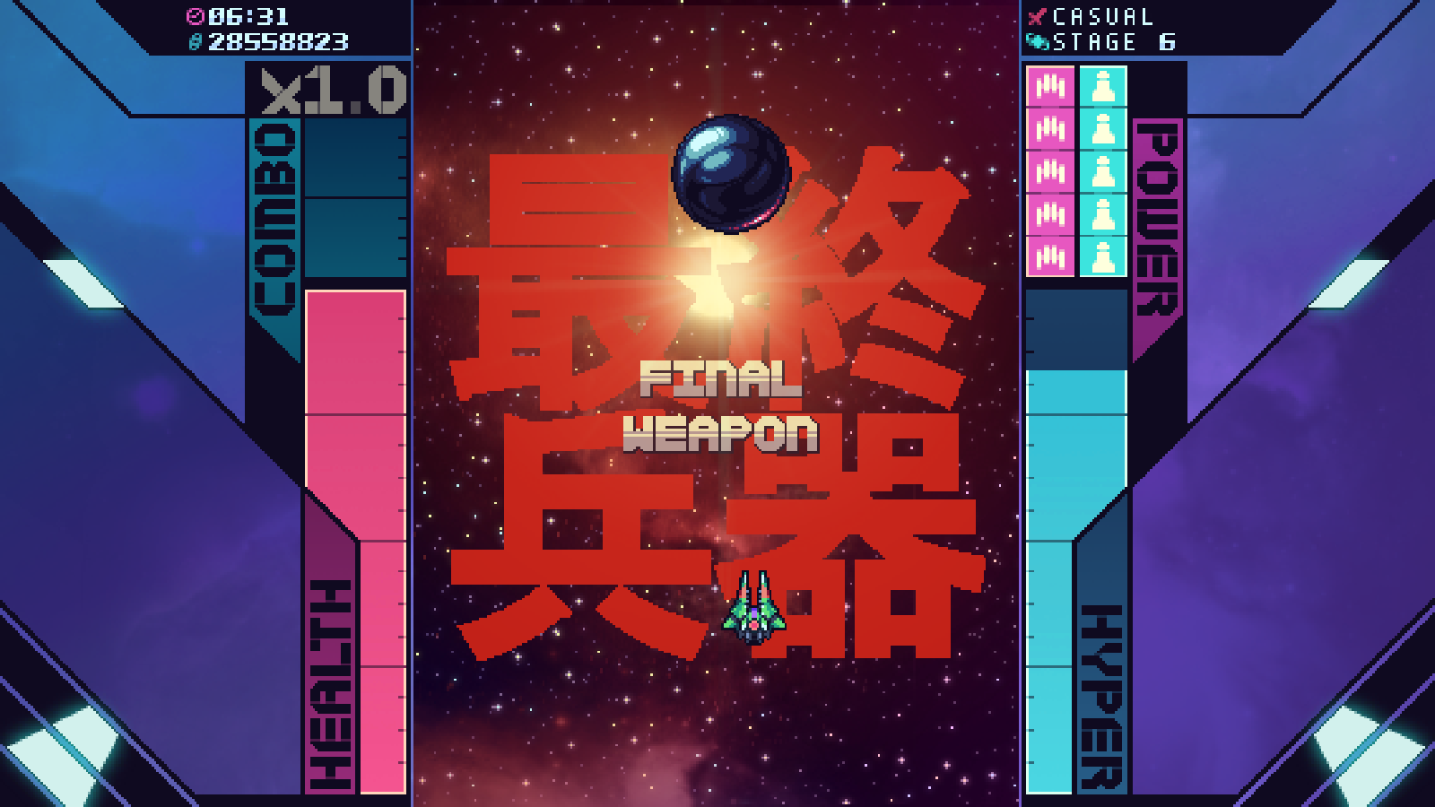 Sam gameply je standardan za shmup. Ogroman broj stvari na ekranu koje moramo izbjegavati kako nas ne bi uništile. Raznoliki tipovi neprijateljskih letjelica i njihovih napada tjera nas na konstantnu kretnju i pronalaženje pravog kuta za napade. Uništavanjem protivnika skupljamo plave ikonice koji dosta nalikuju na ikonu Internet Explorera. Skupljanjem ikonica punimo Hyper metar koji aktivira poseban napad na nekoliko sekundi i čisti ekran od protivnika. Svaka letjelica ima poseban Hyper napad. Naravno, od pick-upova su tu pojačanja za primarno i sekundarno oružje koje u svojoj punoj snazi poprilično efikasno čiste ekran od neprijatelja. I kad nam je health narušen uvijek dobro dođu itemi za njegovo obnavljanje. Sa strane je još i Overrdrive sistem koji se aktivira nakon dostatnog combo lanca i tada stvari postanu lude, ali ludost je na našoj strani.
