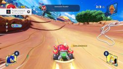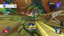 Najvažniji aspekt funkcioniranja ovakvog načina timskog igranja vidljiv je u samim power-upovima. Simpatični power-upovi su i dalje bitan dio svake utrke, a novitet u Team Sonic Racingu je da power-up koji dobijete možete poslati jednom od svojih suigrača/ica iz tima. Ako ste u vodstvu i dobili ste, recimo, raketu, to će svakako pomoći kolegi/ici koji su na začelju kako bi se probili do boljega plasmana. Također, ako ste zaključili da vama treba određeni (ili bilo kakvi, najčešće bilo kakvi ako ste na začelju) power-up stiskom na ”krug” možete zatražiti od drugih. Uz to, tu su i potezi i pojačanja koje dobivate suradnjom vaših vozila za vrijeme utrke. Naime, prateći linije vašeg suigrača/ice ispred vas možete dobiti speed boost, ili sa kontaktom možete aktivirati slingshot, jednokratno odbacivanje unaprijed. Naglasak na tim i zapravo, jedino legitimno igranje ove igre sa troje članova u timu, čini Team Sonic Racing hrabrim naslovom sa nekoliko inovacija koje bi mogle biti dobro dočekane od mnogih, no praktički potpuno brisanje individualnog igranja moglo bi neke dugoročno odbiti od ozbiljnijeg igranja. Iako nesumnjivo ovakav način pruža puno zabave u multiplayeru, single player, pogotovo kampanja, jako brzo dosadi. Čak i kad povećate težinu igranja, igra donosi donekle predvidljivi sustav napredovanja – svaka mapa donosi 5 do 6 utrka koje su sve praktički slične što se tiče ciljeva, samo se odvijaju na novim stazama i pojavljuju se novi ”timovi” koje trebate pobijediti i samim time ih dobiti na korištenje do kraja kampanje. Nema pretjerano duhovitih dijaloga između likova, niti se puno radilo na samoj premisi, a očekivani je i vrhunac priče na samome kraju. Ono što može biti izazovno su dodatni leveli koji od vas traže skupljanje ringsa u jako malo vremena ili skupljanje bodova koje dobivate što boljim driftanjem.