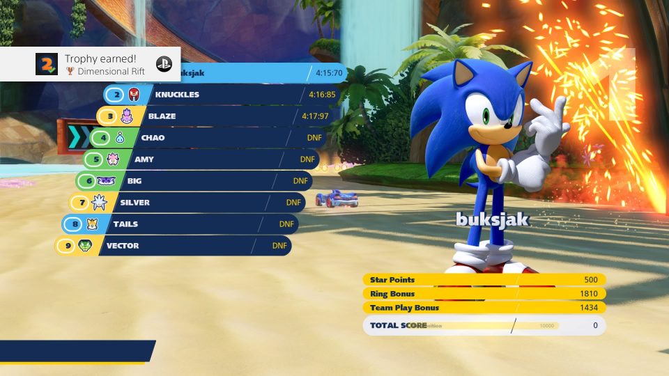 Team Sonic Racing zadovoljava, ali ne oduševljava. Šarenilo ( neke staze su i malo prešarene pa time čak i otežavaju vidljivost staze) i lijepo ponašanje vozila, dobre kontrole sudarile su se sa siromašnim sadržajem, prisilnim timskim igranjem (možete samostalno neke stvari igrati, no to svakako nije na nikoji način naglašeno kao bitan dio igre kao što je igranje u timu) i nedostatkom šarma (koji bi jedna igra koja se sastoji od raznih likova poznatog developera možda trebala imati) snižen je sveukupni doživljaj, pa i sama konačna ocjena. Kada uzmemo u obzir da na Nintendo Switchu postoji Mario Kart te da nam uskoro dolazi Crash Team Racing (koji već sada najavljuje velike prodajne rezultate i kvalitetnu igru punu sadržaja), nekako se čini da će Team Sonic Racing ipak biti nešto što će skratiti mnogima čekanje do CTR Remakea, ali ne puno više od toga. Sumo Digital se nema čega sramiti, i vjerojatno će završiti opet u plusu sa ovom igrom i raditi na drugim projektima, no da dođe na sami vrh biti će potrebno ”još nešto”.