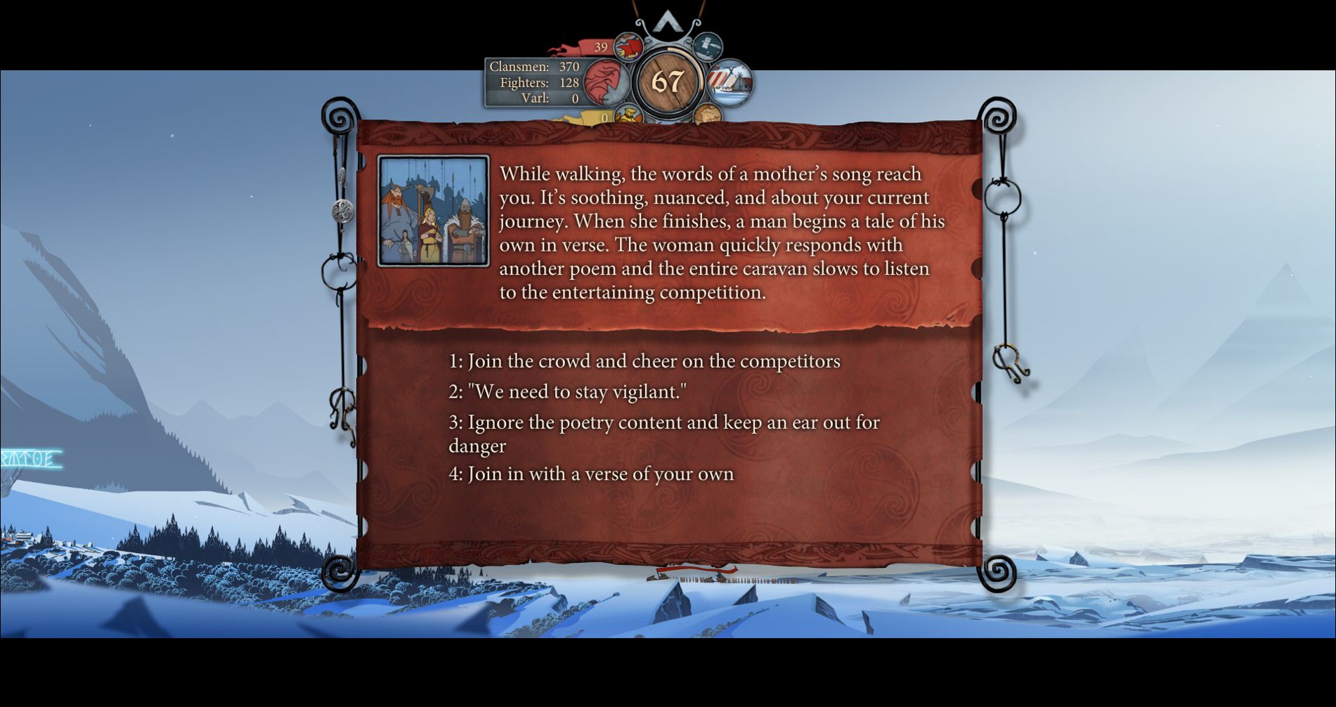 Cijela igra je doslovce bazirana na putovanju tih dvaju karavana te slika sporog prelaska preko raznih zemalja nešto je u što se kroz cijelu igru gleda. Da bi se to učinilo interesantnim, u igru je dodano mnoštvo nevolja na putu, razmirica između likova, ukazanih prilika koje mogu biti zamke, zastoja te pokojeg grada, naselja ili kampa. U tome bi se mogla jednostavno opisati kao tekstovna avantura kakve smo viđali u davnim početnim vremenima PC gaminga te strategija na poteze.