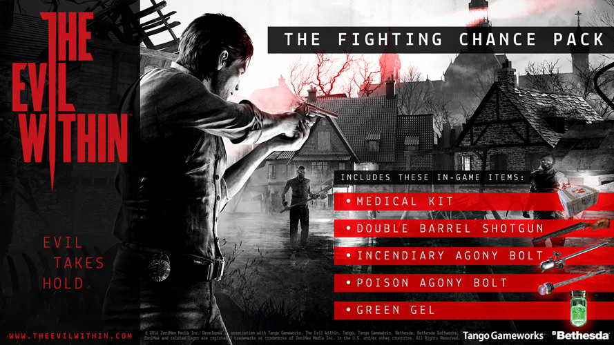 The Evil Within izlazi za PS3, PS4, Xbox 360, Xbox One i PC, a za sve one koji naprave njegovu prednarudžbu, rezerviran je i Fighting Chance pack, zgodan dodatak koji će igrače na startu igre dodatno opremiti za ono što slijedi. Za one kojima ni to ne bude dovoljno, tu je i Season Pass, koji će sadržavati tri najavljena DLC-a.