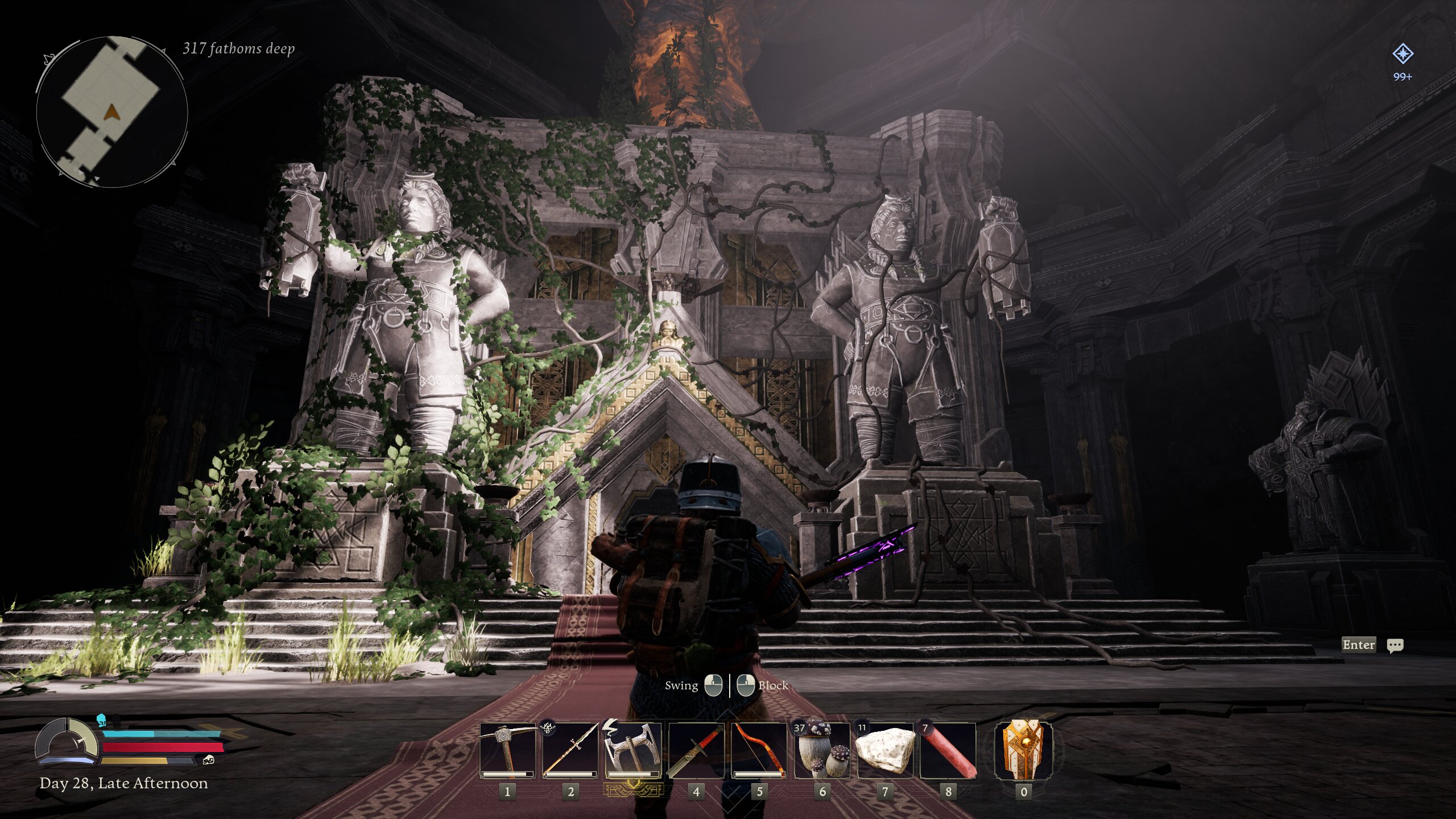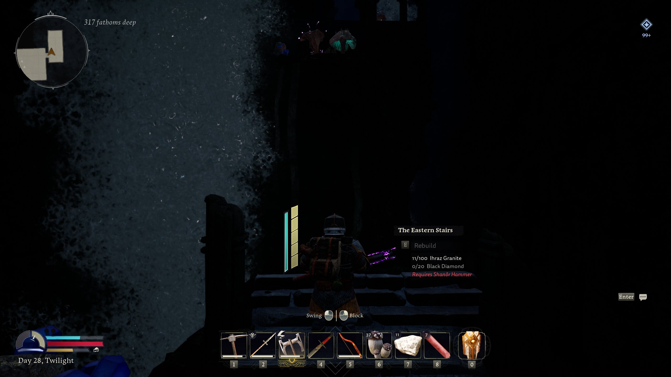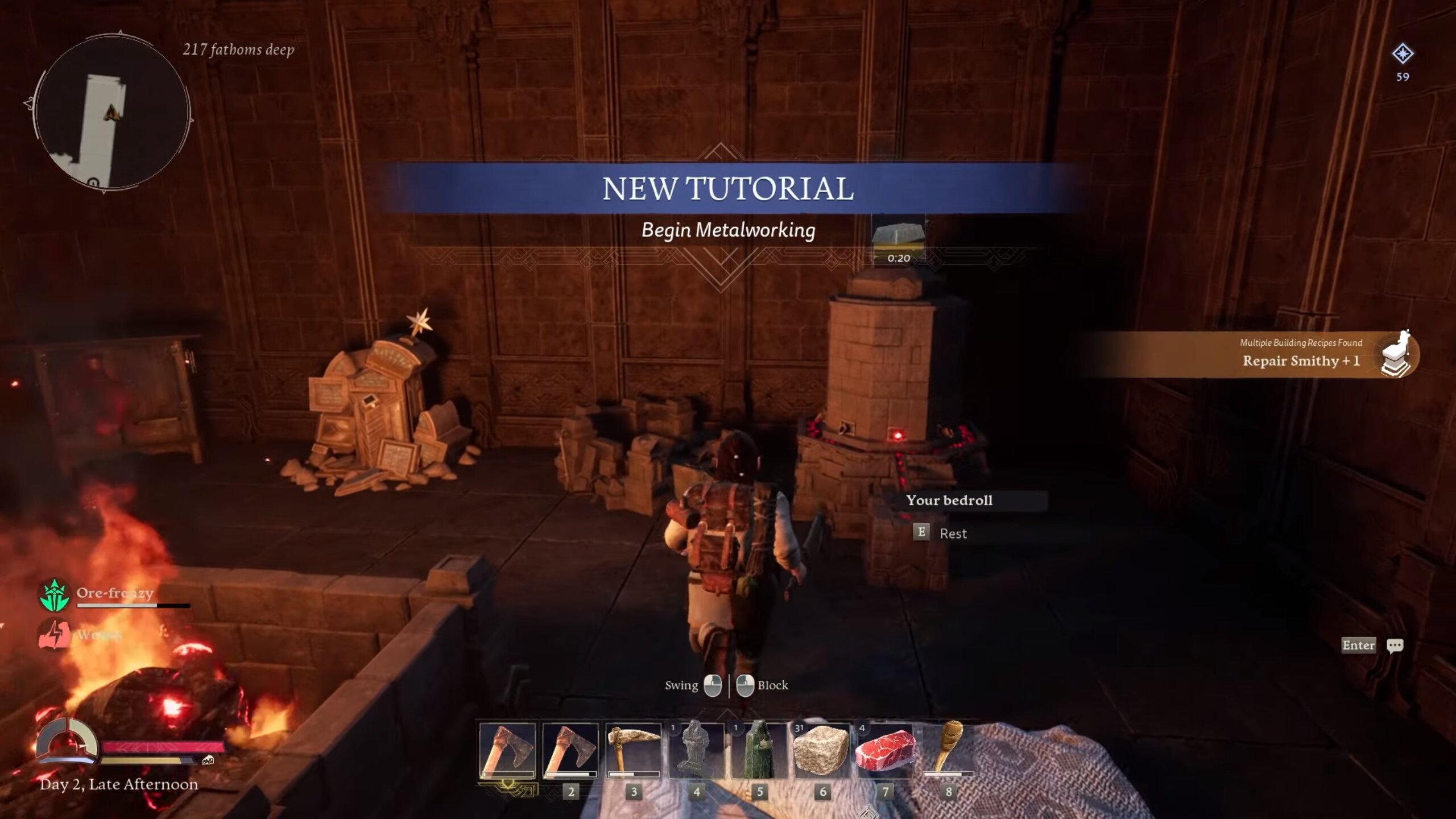 Kako sam spomenuo, većinu vremena provodit ćete putujući i istraživajući razna mjesta i skrivene prostorije. Skupljat ćete resurse i poboljšavati svoju opremu i oružja kako biste uspješno svladali sve prijetnje u ovoj igri. Ovo je čak i zabavan aspekt, jer nikad ne znate što može iskočiti ispred vas prilikom sve dubljeg ulaska u same rudnike, a tama donosi još zagonetnije događaje i neprijatelje. Također, nemojte paničariti ako se pogubite sa silnim sadržajem i resursima koji se nalaze u igri, ona vas ne tjera da odmah idete dalje i napredujete, nego imate dovoljno vremena da sve istražite i prođete. Osim toga, zabava se može pronaći u pijenju piva koje povećava vašu moralnost, staminu, ali daje i različite efekte i pogodnosti. Nadalje, možete kuhati napitke, detaljno analizirati recepte i uvijek planirati svoje buduće pothvate. Igra je iznenađujuće dobrog ritma i napredak u njoj se nagrađuje poprilično velikodušno, međutim, svaka nova zona opet ne nudi toliko raznolikosti i detalja. Uvijek ćete dobiti pet do šest novih stvari koje trebate nadograditi, nakon toga, što dalje?