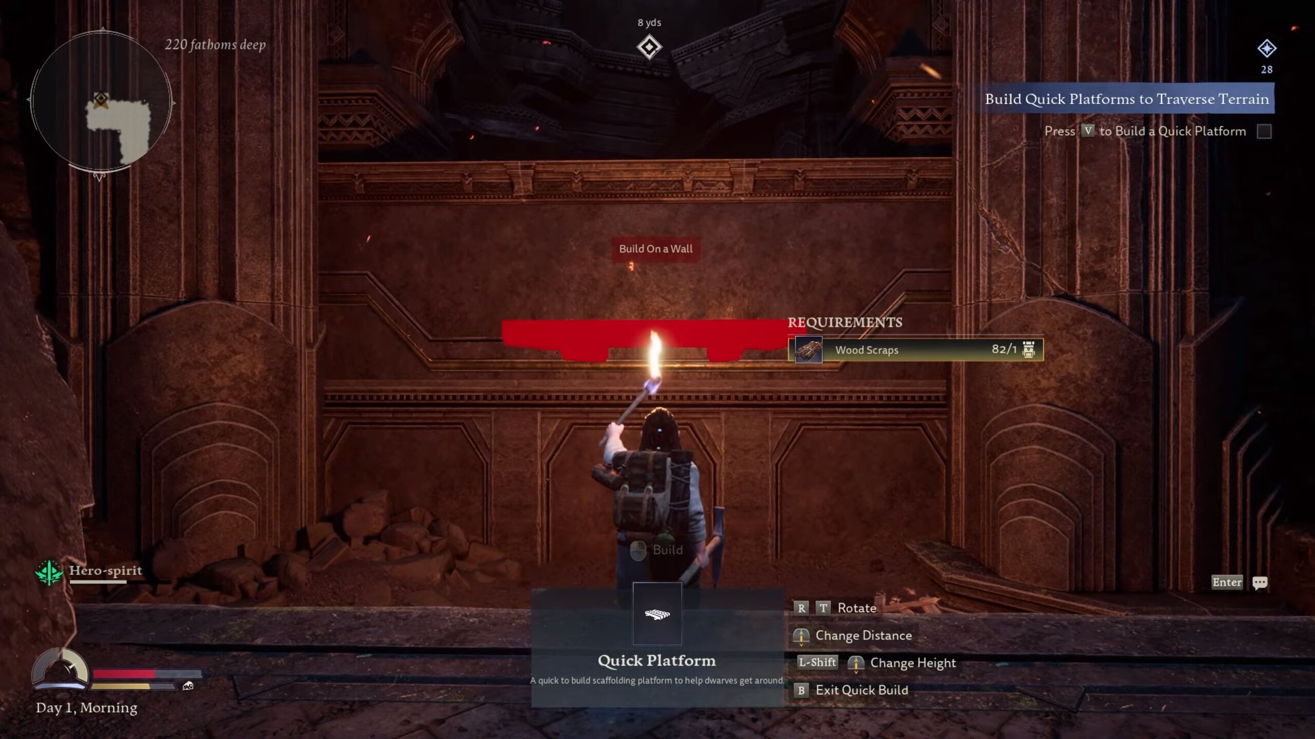 Veliki nedostatak koji ova igra ima je taj da nemate previše slobode. Izgradnja različitih građevina, zidova i predmeta limitirana je kod postavljanja, odnosno nije to sve najbolje smišljeno. Često se zna dogoditi da se dosta namučite samo kako biste postavili nešto na mjesto koje vi želite, a postoji i mogućnost da se sve raspadne jer igra ne registrira najbolje prostor na kojem se nalaze neke platforme. Uz to, limitirani ste i prilikom brzog putovanja s jednog mjesta na drugo. Najbitnija ruda u igri je crni dijamant, do kojeg je izuzetno teško doći, gotovo i nemoguće u nekim situacijama, što je pokvarilo cijelo iskustvo igranja, jer upravo su crni dijamanti potrebni za map stonese koji su opet potrebni za brzo putovanje. Brza putovanja spašavat će vam vrijeme i novac, međutim, zamislite sad da vam treba 20 dijamanata kako bi mogli napraviti most za daljnji napredak. Treba još napomenuti da je Moria okružena nesalomljivim zidovima, odnosno strukturalnim zidovima špilja pa ste također limitirani oko toga što možete uništiti i kuda se možete kretati.