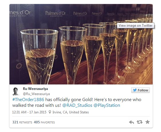 Informaciju o zlatnom statusu igre putem Twittera objavila je nekolicina developera iz razvojnog tima Ready at Dawn, koji su ovaj događaj propisno proslavili i šampanjcem zalili (atmosferu s njihove proslave možete vidjeti i na nekolicini screenova u galeriji ispod).