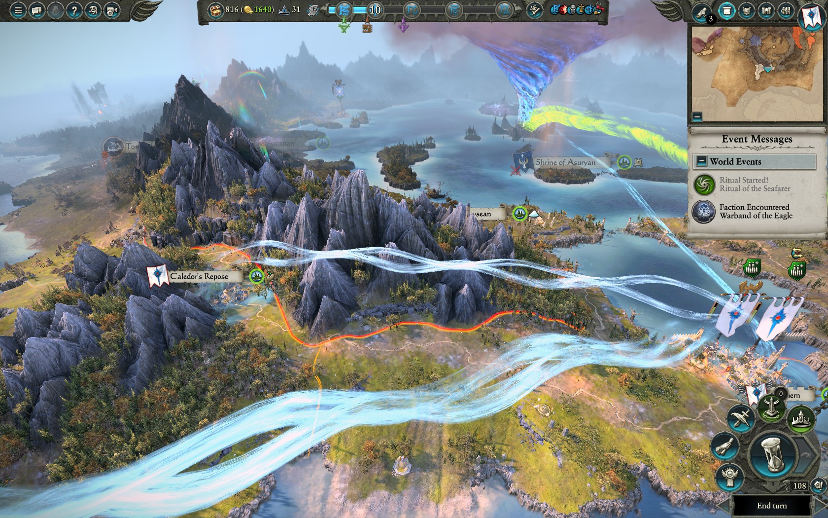 Unatoč tome što mapa TWWII jeste i veća i raznovrsnija u odnosu na prethodnika, samo igranje sa svakom od frakcija čini se više izolirano. Ovo je ponajprije uzrokovano time što sada nemamo agresivne nomadske frakcije ala Greenskinsa pod kontrolom, stoga su sve frakcije dosta vezane provincijama koje se sada pak mogu teže širiti, što zbog klime, što zbog ogromne količine frakcija, čime su autori pokušali dinamizirati dodatno kampanju, u čemu su i uspjeli, ali i stvorili problem konstantnog fokusa na same provincije. Ovo je dodatno pojačano i time što za vrijeme izvršavanja rituala frakcije kaosa sve jače napadaju vaše provincije koje se vežu sa vrtlogom tijekom izvršavanja rituala. Treba još pomenuti da svaka od frakcija ima specifične obrede koji daju pogodnosti unutar određenog broja poteza, a koji su nezavisni od glavnog rituala.