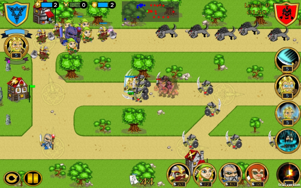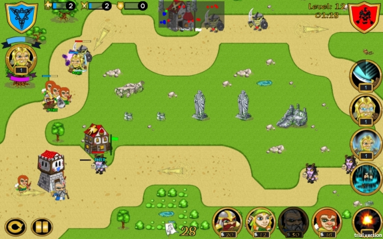 U out of game dijelu igre, igrač koristi kristale koje zarađuje na svakom nivou ovisno o postignutim achievementima, za kupovinu i unaprijeđivanje brojnih heroja, vojske, spellova i home towera. Za svaki level igrač bira jednog heroja, četiri različite jedinice i global spell kojeg će koristiti u tom levelu.
