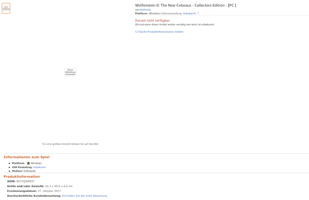 Naime, njemački Amazon, inače poznat po svojoj (slučajnoj ili namjernoj) brzopletosti, danas je objavio produktnu stranicu za Wolfenstein II: The New Colossus, zajedno s njegovim datumom izlaska. Stranica je vrlo brzo uklonjena, no ne i dovoljno brzo, budući da su vrijedni NeoGAFovci uspjeli uhvatiti printscreen ponude.