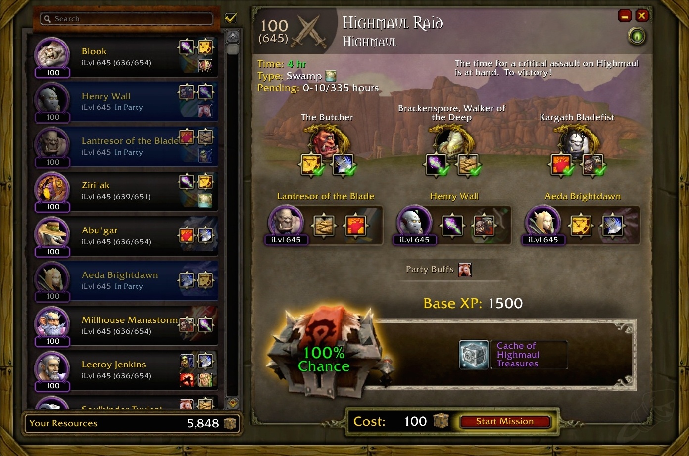 Za ući u lvl100 instance, potreban vam je barem 615 item level, kojeg se ruku na srce može sakupiti vrlo jednostavno prateći i rješavajući quest-lineove u posljednoj zoni – Nagrand (ako izuzmemo Ashran i Faralohn koji su war zone), koja je zbilja zanimljiva i priča s kojom ćete se susresti u njoj je vrhunac onog što WoD nudi, barem što se PvE igrača tiče. Moram spomenuti problematiku cijelog sistema sa itemima koja me trenutno bode u oći. Naime, najveći problem sa opremom je u njenim sekundarnim statovima. Blizzard je očito radio na tome da opremanje likova i prikupljanje opreme bude što jednostavnije. Sekundarni statovi na itemima koji dropaju u dungeonima, itemima koje dobijete kao nagradu za questove ili craftanim itemima su totalno nasumični pa je za neke igrače koji vole slagati best-in-slot opremu totalno smiješno i pomalo frustrirajuće vidjeti sekundarni stat u opremi koji nema veze sa njihovim buildom. Nešto je manji problem sa craftanim itemima jer igrači mogu napraviti iteme s kojima se sekundarni statovi mogu ponovno “rollat”. Skupljanje opreme je dakle poprilično jednostavno ako vam ne smeta nasumičnost, a to govorim iz razloga jer to u prevodu znači da nakon par sretnih dropova u dungeonu, možete skupiti dovoljan item lvl za mythic raidanje. No kako bilo, svaka priprema za raid počinje sa kvalitetnim grindanjem, samo je to u WoDu nekako naglašenije, što je svakako čudno ako uzmemo u obzir da u end-game sadržaju više nema enormne količine daily questova kako je to prije bio slučaj. Kraftanje je također pojednostavljeno, iz cijele matematike su totalno izbačeni “zeleni itemi”, što ostavlja okus u ustima da je Blizzard otišao iz jedne krajnosti u totalno drugu. No kako bilo, sistem opremanja je u krajnju ruku ugodan i zanimljiv, a uzmemo li cijeli taj proces igranja u obzir, gotovo neprimjetna stvar, osim ako naravno niste cjepidlaka koja želi apsolutnu kontrolu nad svakim bodom statistike u svojoj opremi. Ovo će se vjerojatno s vremenom ispolirati, prvenstveno ako primjetimo kako nova valuta Apexis Crystal koja je zamjenila Valor points sistem trenutno ne služi direktno u tu svrhu, nego za kupovanje gotovih raid itema, mounta i sličnih gungulija. Iskreno vjerujem da će to ubrzo sjesti na svoje i da će igrači s bilo kojim afinitetima prema igri biti sretno opremljeni za raid.