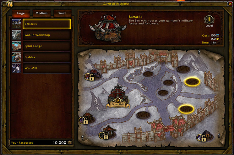 Garrison je zapravo housing sistem kojeg unazad nekoliko godina izvode mnogi MMORPG naslovi, no WoW je upravo pomeo pod sa svim konkurentnim sistemima te postavio letvicu na novu razinu. Kada prvi put dođete u Draenor i rješite uvodne questove ekspanzije, kao nagradu za pomoć u borbi protiv željezne horde, dobit ćete komad zemlje u početnoj zoni gdje se osniva vaš garrison, odnosno vaš posjed gdje u pravoj role-playing maniri možete glumiti lokalnog šerifa i moćnika. I dok se većina ostalih housing sistema u drugim igrama usmjerava u stvaranju vaše kućice i uređivanju iste u maniri Sims igara, garrison u WoW-u služi kao vaš osobni centralni hub u kojem možete izvoditi većinu onog što bi radili u velikim gradovima. Naglasak je stavljen na vaš osobni odabir za što će vam garrison služiti. Pošto ne možete izgraditi sve vrste građevina koje su u igri dostupne, morat ćete odabrati ono što vama najviše paše i čime se najviše želite baviti. Za svakoga je tu ponešto, krafteri će u garrisonu imati hrpu dodatnog materijala za skupljanje što im itekako spašava dragocjeno vrijeme. Ne samo oni, igrači koji se uopće ne bave profesijama, također imaju mogućnost prikupljanja crafting materijala u svom garrisonu kojeg dalje mogu prodati i imati nekakav prihod od toga. Skupljači petova i achivementa također imaju brdo opcija u svom garrisonu, gradnjom određenih građevina dopušteno im je i timarenje mountova, tako da ćete u Draenoru sada moći sami sebi uhvatiti mounta u divljini. Voljeli vi Raid ili PvP igru, istraživanje svijeta, rješavanje instanci ili bilo što drugo, svi možete u garrison sistemu pronaći nešto za sebe što će vas držati zaokupljenim, bilo da se želite maknuti od questanja, bilo da tražite dodatni end-game content, garrison po mom mišljenju služi prvenstveno kao izvor dodatnog sadržaja. Pored toga, svi u garrisonu prikupljaju followere koji se mogu slati na obavljanje raznih misija iz kojih ćete dobijati dodatne materijale, resurse za leveliranje građevina i garrisona, gold te iskustvo za vaše followere kako bi mogli rješavati što teže questove. Garrison je mikro-svijet za sebe i svakako je veliki plus na cijelu ekspanziju, a ukoliko ste igrač koji želi posvetiti vrijeme u taj sistem, igra će vas naposljetku i nagraditi. Uvijek govorim, prvenstveno za MMO igre da je njihova smrt ako fali end-game sadržaja, sadržaj je sve, a Blizzard se dobrano potrudio da u WoD ubaci sadržaj, što mu je definitivno i uspjelo.