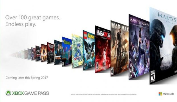 Kao odgovor na PlayStaton Now i EA Access usluge, Microsoft je najavio Xbox Game Pass, novi pretplatnički model koji bi trebao startati već na proljeće, a koji će pretplatnicima omogućiti pristup preko 100 Xbox One i backward compatible Xbox 360 za simboličnu mjesečnu pretplatu u iznosu od £7.99/$9.99.