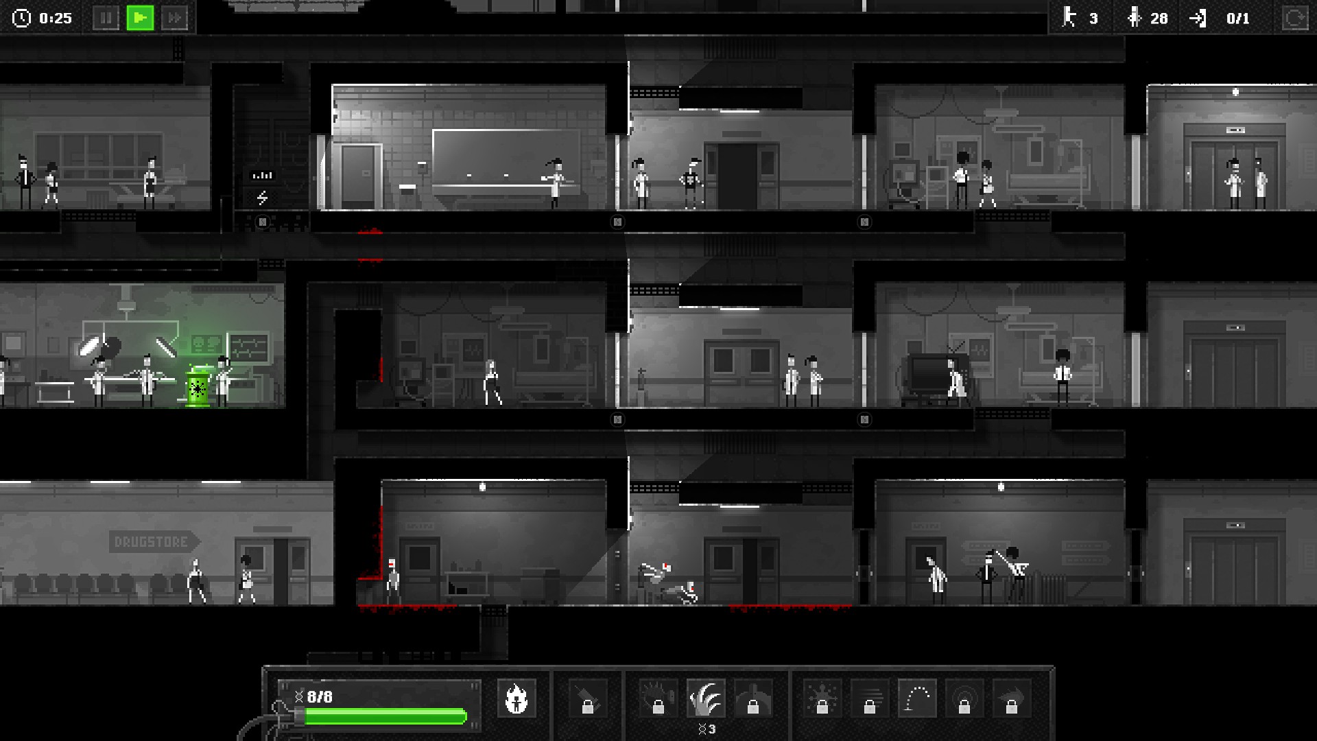 No, snažne reference i utjecaji filmske kulture, zajedno sa fantastičnim humorom i pisanjem, ne čine igru. Igru ipak čine njezin gameplay i mehanika. Smještena u 2d perspektivu, igra svojom mehanikom dosta podsjeća na Lemmingse. Znat će igrači i igračice koji su konzumirali PC igre još početkom 90-tih o čemu govorim. Mehanika se svodi na kontroliranje bezumne horde koja se konstantno kreće i pomoću različitih alata, odnosno sposobnosti manipuliramo njihovom kretnjom i ponašanjem. Abilitye, odsnosno sposobnosti, otključavamo progresivno kroz igru. Tako vrlo rano dobivamo Zombie Overlorda, koji je svojevrsni prometnik i usmjerava hordu da se kreće u jednom smjeru. Tu su kasnije Explode (dovoljno se opisuje) koji koristimo za uništavanje zidova ili vrata, ili pak kontaminiranje žrtava, zatim Jump, ili Run, gdje zombi postaju oni brzi zombiji iz World War Z-ja…itd. Svi ti abilityji konzumiraju DNA kao resurs, tako da nije moguće beskonačno korištenje istih, osim ako sama misija to ne ukazuje. DNA bodove dobivamo žrtvujući vlastite zombije i tako se dobiva balans u promišljanju i razvijanju strategije prilikom prolaženja staza. A to je jako, jako, jako bitan element igre. Vrlo rano u igri shvatit ćete kako igra kažnjava nerazboritost i požurivanje.